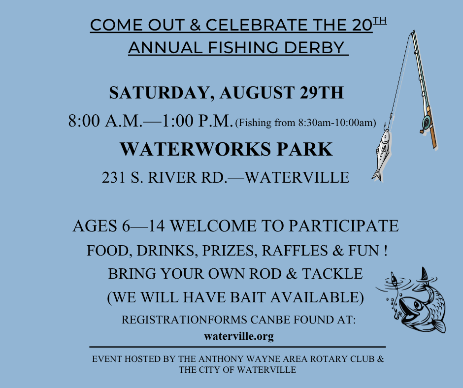Welcome to the City of Waterville Sign up for our Newsletter Welcome to the City of Waterville Welcome to the City of Waterville Trash/Recycling Meeting/Agendas Calendar Current News Utilities Spring Unlimited Trash Pickup Area A: May 9th Area B: May 16th City of Waterville Safety City 2026 June 22 – 26 Register today! 20th Annual Fishing Derby 2026 August 29th 2026 Register today!